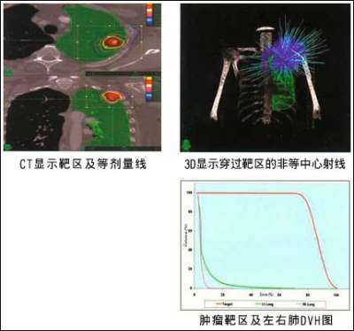 患者因担忧较长康复期,拒绝外科手术。她的另一个可选非外科治疗方式为放射治疗,最后决定立体定向放射外科方法是患者的最好治疗方式。近来研究显示立体定向体部放射治疗可以得到与外科手术同样的治疗效果,还有些研究揭示了射波刀治疗肺癌的可行性。因为明显降低了周围组织、皮肤、肌肉和骨的放射剂量,与普通放疗相比治疗并发病明显降低。并且应用立体定向放射外科治疗技术,未见明显放射性肺纤维化。
